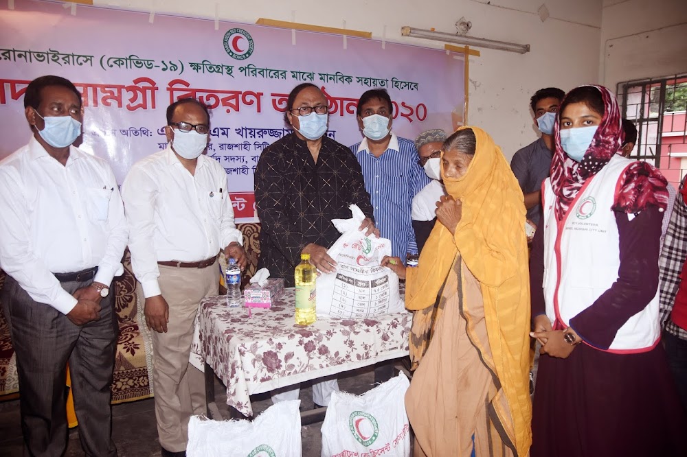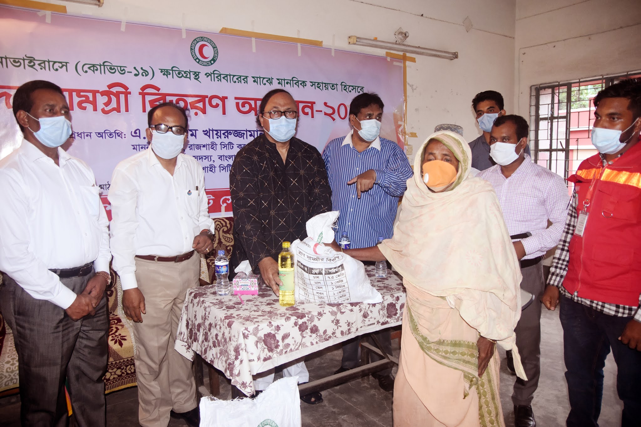 প্রেস বিজ্ঞপ্তি: করোনাভাইরাসে (কোভিড-১৯) রাজশাহী মহানগরীর ক্ষতিগ্রস্থ ৫০০ পরিবারকে মানবিক সহায়তা হিসেবে খাদ্য সহায়তা প্রদান করা হয়েছে। রবিবার বিকেলে রাজশাহী কলেজিয়েট স্কুল এ্যান্ড কলেজে খাদ্য সহায়তা প্রদান কার্যক্রমের আনুষ্ঠানিক উদ্বোধন করেন রেড ক্রিসেন্ট সোসাইটির ব্যবস্থাপনা পর্ষদের সদস্য, রাজশাহী সিটি ইউনিটের চেয়ারম্যান ও সিটি কর্পোরেশনের মাননীয় মেয়র এ.এইচ.এম খায়রুজ্জামান লিটন। বাংলাদেশ রেড ক্রিসেন্ট সোসাইটি রাজশাহী সিটি ইউনিট সামাজিক দূরত্ব মেনে এই অনুষ্ঠানের আয়োজন করে।
