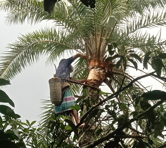 রাইন মোস্তাফী নিশাতঃ শীতের আগমন শুরু হলেই রাজশাহীতে শুরু হয় খেজুর গাছ পরিচর্যা। শীত মৌসুমে খেজুর গাছের রস সংগ্রহ করে তা থেকে তৈরি হয় গুড়। ইতোমধ্যেই রস সংগ্রহের জন্য খেজুর গাছ কাটায় (পরিচর্যা) ব্যস্ত সময় পার করছেন রাজশাহীর গাছিরা। গাছ কাটার ১০-১২ দিন পর থেকেই শুরু হবে রস সংগ্রহ। রাজশাহীর বেশির ভাগ গ্রামের পথ দিয়ে হেঁটে গেলে চোখে পড়ে খেজুর গাছ। জমির প্রতিটি আইলে খেজুর গাছ লাগিয়েছেন গ্রামের কৃষকরা। শীত মৌসুমে এসব গ্রামে খেজুরের রস বিক্রি ও গুড় তৈরির কাজ চলে পুরো দমে। এখন চলছে তারই প্রস্তুতি।