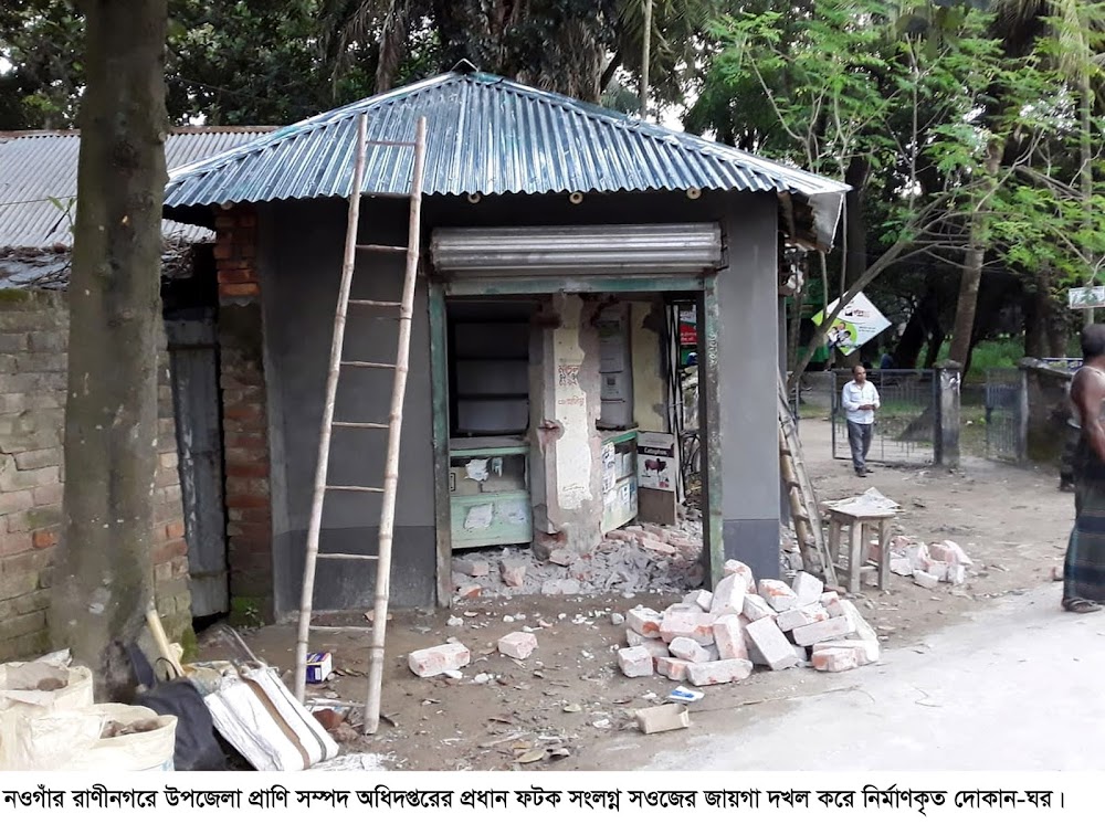 কিন্তু উপজেলা প্রশাসন সংলগ্ন ও একটি সরকারি প্রতিষ্ঠানের প্রধান ফটকের সামনে সরকারি জায়গা দখল করে এমন ভাবে স্থায়ী দোকান ঘর নির্মাণ কাজে বাধা না দিয়ে প্রশাসনের নিরব ভ’মিকায় স্থানীয়দের মাঝে চরম ক্ষোভের সৃষ্টি করেছে। এই স্থাপনা নির্মাণ করায় উপজেলা প্রাণি সম্পদ অধিদপ্তরের সৌন্দর্যের যেমন হানি ঘটিয়েছে তেমনি ভাবে বড় কোন যানবাহন অধিদপ্তরে প্রবেশের সময় বাধার সৃষ্টি করবে এই দোকান ঘরের পিলারগুলো এমনটিই অবিযোগ স্থানীয়দের।
