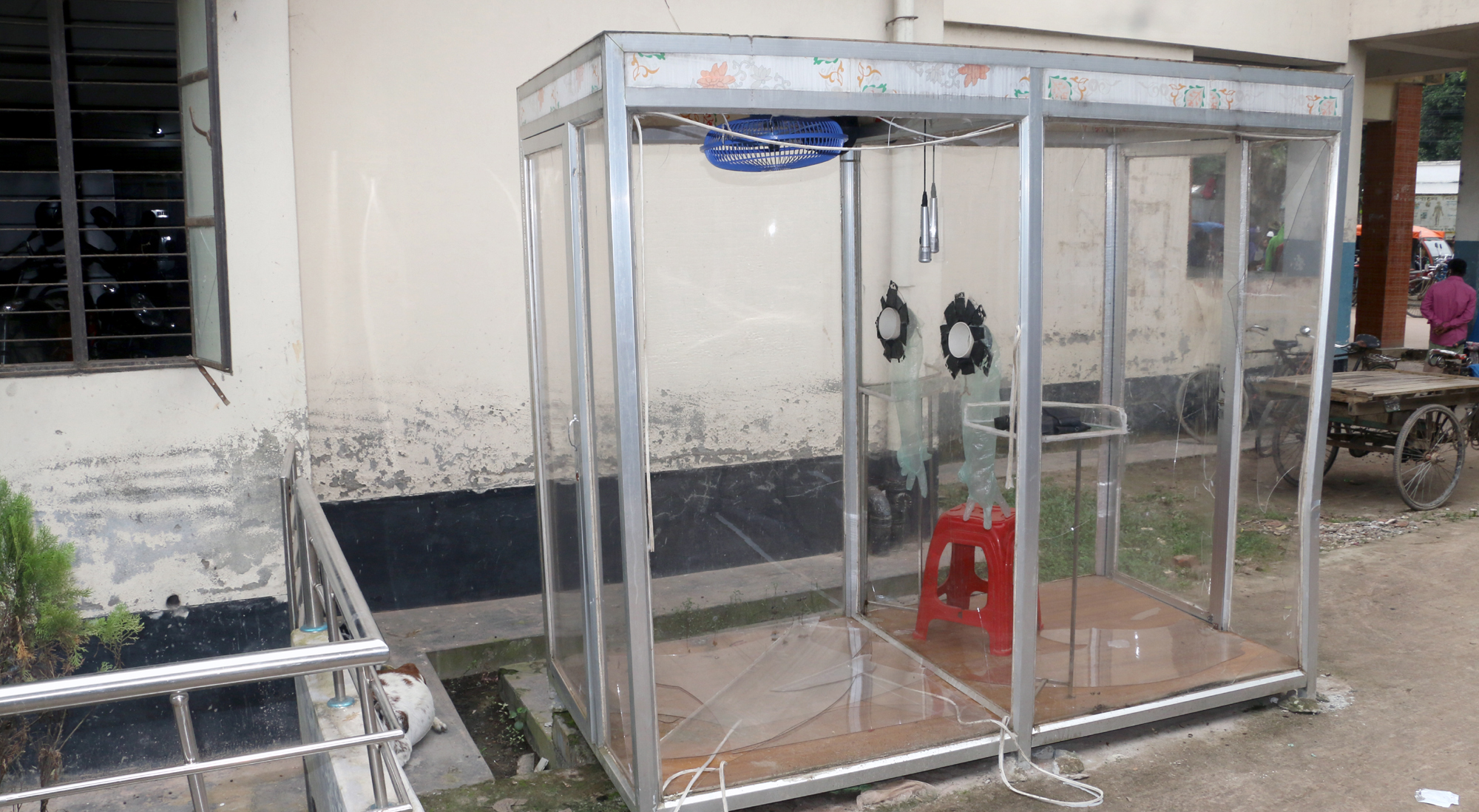সরেজমিনে উপজেলা স্বাস্থ্য কমপ্লেক্স চত্বরে গিয়ে দেখা যায়, সেখানে স্থাপিত করোনার নমুনা সংগ্রহের বুথটি ভাঙা অবস্থায় রয়েছে। বুথটির ইস্পাতের একঅংশে কোনকিছুর ধাক্কার চিহৃ রয়েছে। ওই ধাক্কার কারণেই বুথটির চারিদিকের প্লাষ্টিকের সুরক্ষা দেয়ালটি ভেঙ্গে গেছে। এদিকে উপজেলা স্বাস্থ্য কমপ্লেক্স চত্বরে রয়েছে ৫-৭টি ব্যক্তি মালিকানাধীন এ্যাম্বুলেন্স। দিবারাত্রী ওই এ্যাম্বুলেন্সগুলো দাপটের সাথে অবস্থান করে থাকে সেখানে। সরকারি এ্যাম্বুলেন্স ঠিক মতো না চলায় রোগীর স্বজনদের কাছে অতিরিক্ত টাকায় করে চলছে ওইসব এ্যাম্বুলেন্সগুলো।