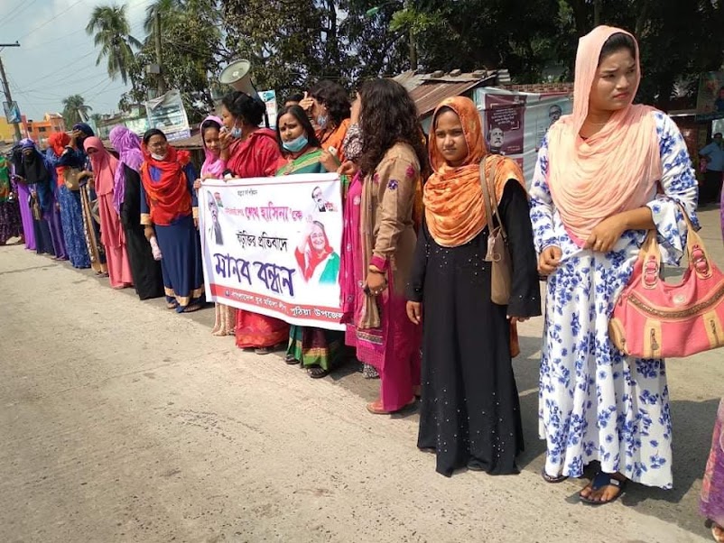 প্রেস বিজ্ঞপ্তি : বাংলাদেশ আওয়ামী লীগের সভাপতি ও সফল প্রধানমন্ত্রী শেখ হাসিনাকে নিয়ে কটুক্তির প্রতিবাদে বিক্ষোভ সমাবেশ ও মানববন্ধন করেছে পুঠিয়া উপজেলা যুব মহিলা লীগ।