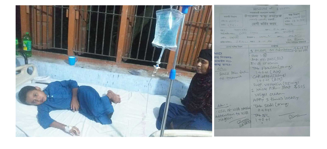 পরেরদিন ফরাদপুর এলাকায় আমার আত্বিয় ছাত্র সাহারিয়ার আলম তার খালার বাড়ী খেতে গিয়ে শুয়ে পড়ে। তার এ অবস্থা দেখে ২০ আগষ্ট তাকে গোদাগাড়ী উপজেলা (প্রেমতলী) স্থাস্থ্য কমপ্লেক্সে নিয়ে যাওয়া হয়। সেখানে তার চিকিৎসা দেওয়ার পর তাকে বাড়ী নিয়ে চলে আসা হয়। আমরা তার অবস্থা এত গুরত্ব বুঝতে পারিনি। তার অবস্থা বেগতিক হলে পুনরায় ২৩ আগষ্ট উপজেলা (প্রেমতলী) স্থাস্থ্য কমপ্লেক্সে নিয়ে যায়।