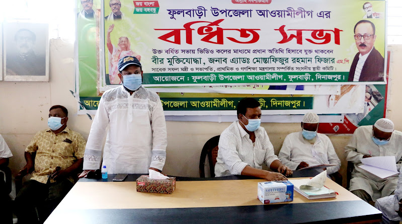 প্লাবন শুভ, ফুলবাড়ী (দিনাজপুর) প্রতিনিধি : দিনাজপুরের ফুলবাড়ীতে গতকাল সোমবার উপজেলা আওয়ামী লীগের বর্ধিত সভা অনুষ্ঠিত হয়েছে। দুপুর ১২টায় উপজেলা আওয়ামী লীগের কার্যালয়ে আয়োজিত বর্ধিত সভায় ভার্চুয়ালে প্রধান অতিথি হিসেবে বক্তব্য রাখেন প্রাথমিক ও গণশিক্ষা মন্ত্রণালয় সম্পর্কিত সংসদীয় স্থায়ী কমিটির সভাপতি ও জেলা আওয়ামী লীগের সভাপতি সাবেক মন্ত্রী বীর মুক্তিযোদ্ধা মো. মোস্তাফিজুর রহমান ফিজার এমপি।