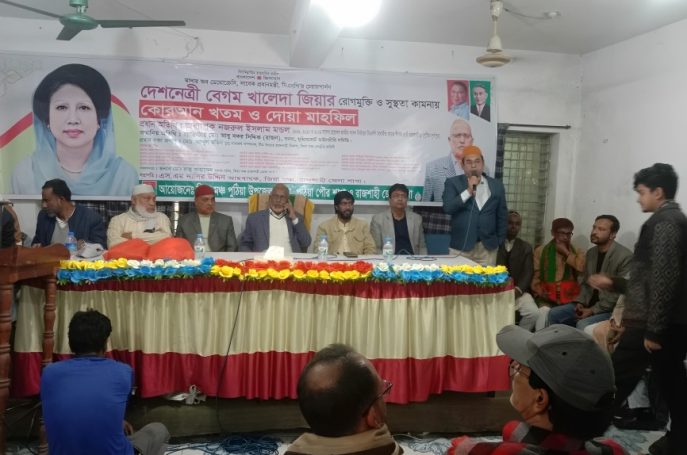 নভেম্বর ২৬, ২০২৫ পুঠিয়ায় সাবেক প্রধানমন্ত্রী খালেদা জিয়ার রোগমুক্তি ও সুস্থতা কামনায় কোরআন খতম ও দোয়া মাহফিল অনুষ্ঠিত
