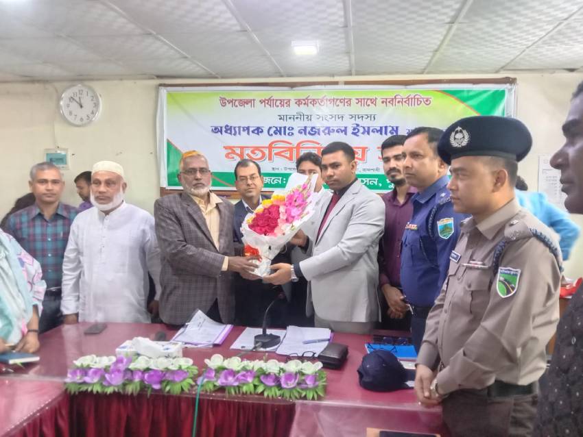 পুঠিয়া (রাজশাহী) প্রতিনিধিঃ রাজশাহীর পুঠিয়ায় উপজেলা পর্যায়ের কর্মকর্তাদের সাথে রাজশাহী-৫ (পুঠিয়া-দূর্গাপুর) আসনের নবনির্বাচিত সংসদ সদস্য অধ্যাপক নজরুল ইসলাম এর মতবিনিময় সভা অনুষ্ঠিত হয়। সোমবার সকালে রাজশাহীর পুঠিয়া উপজেলা পরিষদ সম্মেলন কক্ষে উপজেলা প্রশাসন এই অনুষ্ঠানের আয়োজন করেন।
