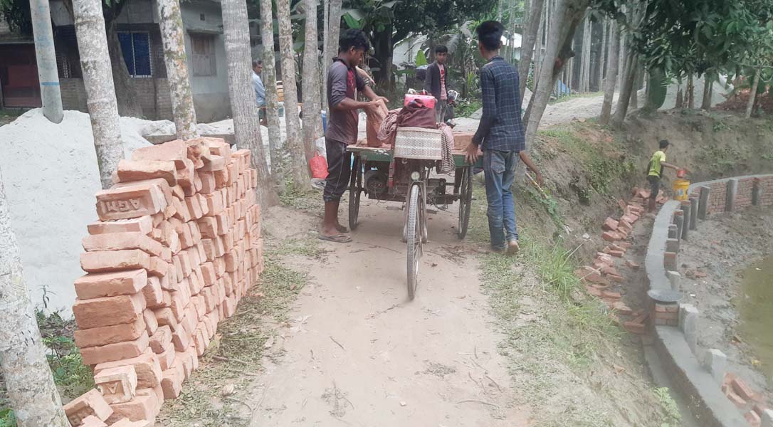 কাজের শেষ পর্যায়ে এলাকাবাসী প্রতিবাদ করলে পিকেট তেরা বেকা ইট দিয়ে কাজ করছিলো এবং নিচে যে পরিমাণ ১৫ ইঞ্চি ইট গাথার কথা তা না করে কোন রকম তারা হুরা করে অনিয়েমের মাধ্যমে কাজ করছিলো। প্রতিবাদ করায় পরবর্তীতে আবার নিচে ৫ ইঞ্চি ইট গেথে দেয় ঠিকাদারের লোকজন।