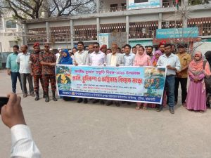 দিবস উপলক্ষে পুঠিয়া উপজেলা পরিষদ থেকে একটি র্যালী বের করে পুঠিয়া পরেশ নারায়ন সরকারী উচ্চ বিদ্যালয়ে গিয়ে ফায়ার সার্ভিসের ভূমিকম্প ও অগ্নিকান্ড বিষয়ক মহড়ায় অংশগ্রহণ করেন।