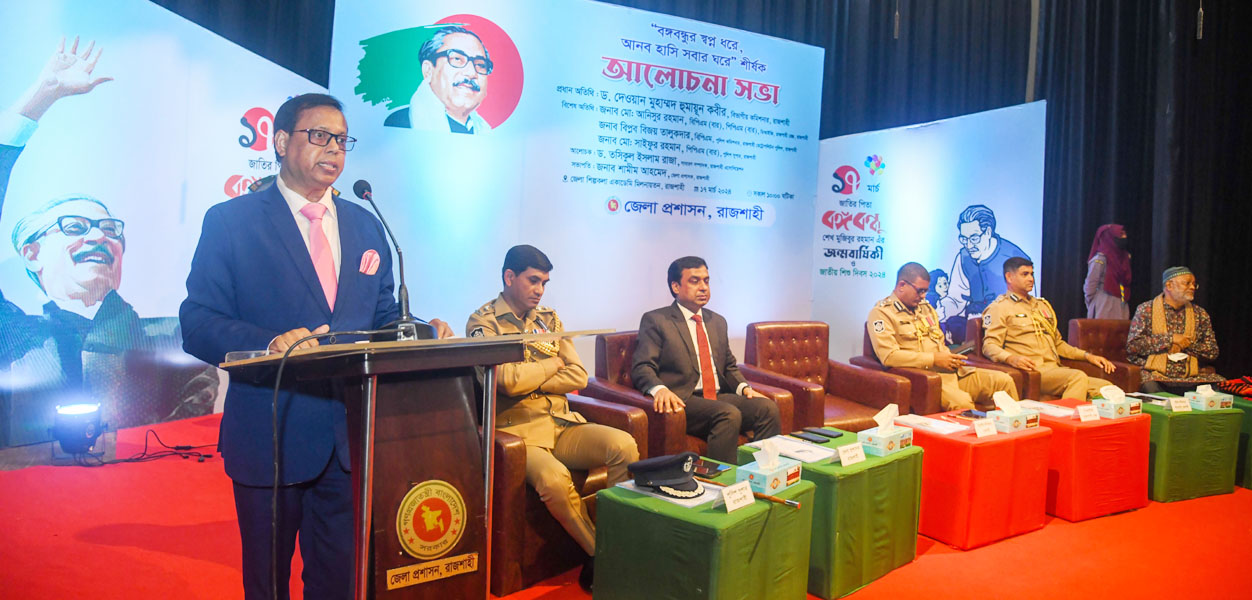 স্টাফ রিপোর্টার: রাজশাহী বিভাগীয় কমিশনার ড. দেওয়ান মুহাম্মহ হুমায়ূন কবীর বলেছেন, জাতির পিতা বঙ্গবন্ধু শেখ মুজিবুর রহমান তাঁর কনিষ্ঠপুত্র শেখ রাসেলকে যেভাবে ভালবাসতেন, ঠিক তেমনি অন্য শিশুদেরকেও তিনি ভালবাসতেন। বঙ্গবন্ধুর শিশুদের প্রতি ভালবাসা ও শিশুমনষ্ক স্বভাবকে সম্মান জানিয়ে তাঁর জন্মদিনকে জাতীয় শিশু দিবস করা হয়েছে।