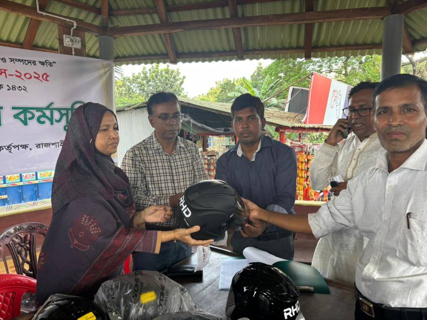 জানা গেছে, সড়ক নিরাপত্তা নিশ্চিত এবং মানসম্মত হেলমেট ব্যবহারের বিষয়ে সচেতনতা সৃষ্টির লক্ষ্যে মাননীয় উপদেষ্টা সড়ক পরিবহন ও সেতু মন্ত্রণালয়, সড়ক পরিবহন ও মহাসড়ক বিভাগ এর নির্দেশনার আলোকে প্রতিটি সড়ক বিভাগে একশত টি করে হেলমেট প্রদান করা হয়। তারই ধারাবাহিকতায় রাজশাহী জেলার বেলপুকুর যাত্রী ছাউনি নামক স্থানে সড়ক বিভাগ রাজশাহী হেলমেট বিতরণ করেন।