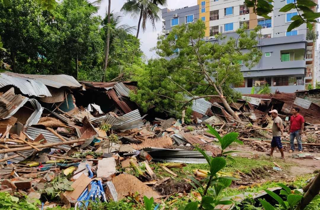 শুক্রবার রাত ২ টা ১০ মিনিটে মিঠাই বাজার মিষ্টি কারখানায় পিস্তর ও দেশীয় অস্ত্র নিয়ে হেলমেট মাথায় দিয়ে এসে হামলা করে টাকা লুটপাট করে এবং বুল ডোজার দিয়ে কারখানা ভেঙে গুড়িয়ে দেয়।
