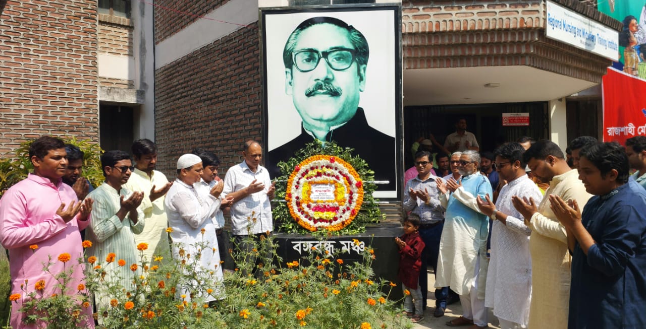 প্রেস বিজ্ঞপ্তি: রাজশাহী মেডিকেল বিশ্ববিদ্যালয়ে জাতির পিতা বঙ্গবন্ধু শেখ মুজিবুর রহমান এঁর জন্মবার্ষিকী ও জাতীয় শিশু দিবস পালন করা হয়েছে। দিবসটি উপলক্ষ্যে রোববার (১৭ মার্চ ) সূর্যোদয়ের সাথে সাথে রামেবির অস্থায়ী কার্যালয়ে জাতীয় পতাকা উত্তোলন করা হয়।